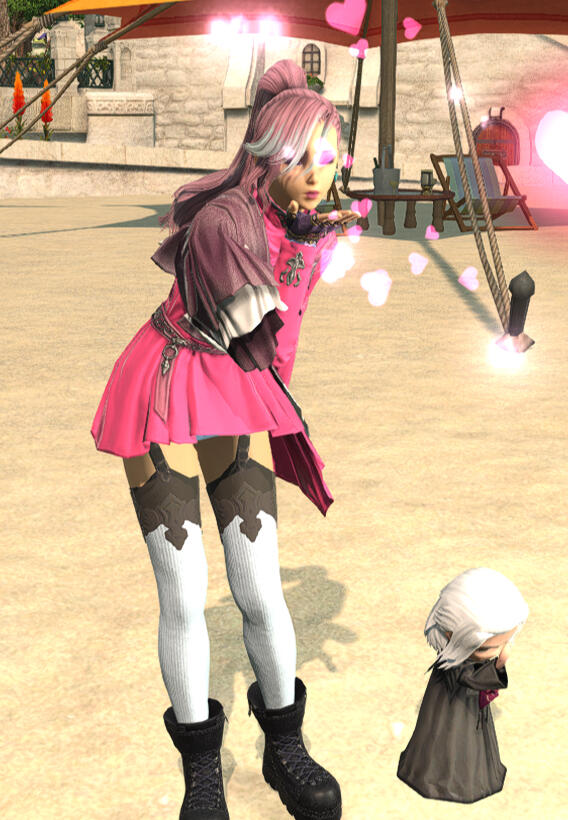 I hail from the FFXI days where i played for nearly 7 years and going back i played FFVII so a fairly serious FF player. This is Pops first real online gaming experience as she never really gamed before meeting me xD but we enjoy playing games like Raft, The Forest and Subnautica together outside of FFXIV.